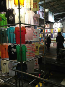 旧線路にTシャツがディスプレイされているという光景。