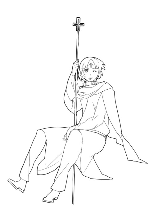 リュート絵の線画。